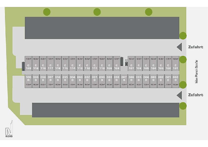 Direkt im Gewerbegebiet „Glockensteinfeld“ in Hildesheim wurde ein Selfstorage XXL mit 120 Mieteinheiten errichtet. Die einzelnen Lagerflächen bestehen aus hochwertigen Fertigbetongaragen mit 15 bis 30 m² Lagerfläche. Ausgestattet sind die Kleinlager mit Schwing- oder Sektionaltor, Stromanschluss, Licht und Steckdose. Die obere Etage des Lagers ist über eine Treppe und einen Lastenaufzug erreichbar.