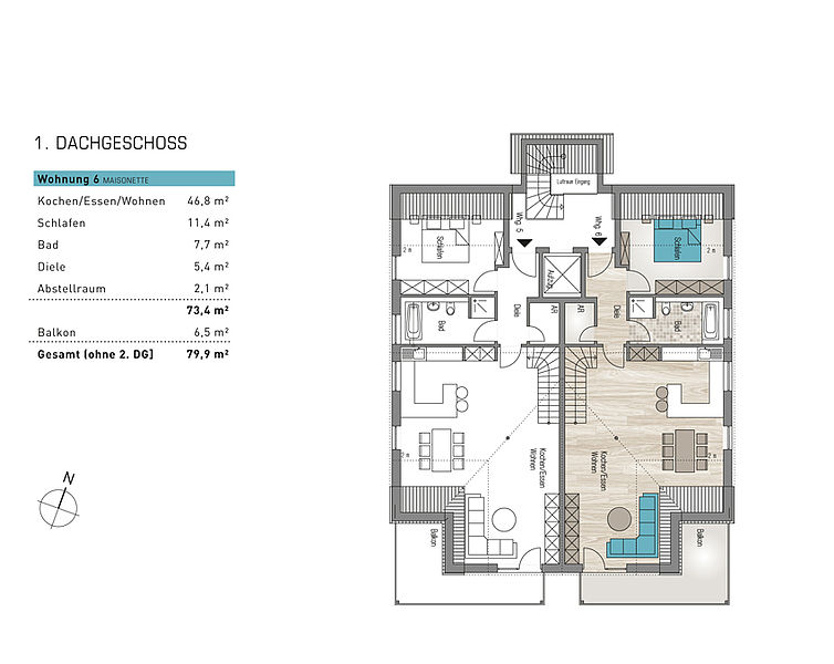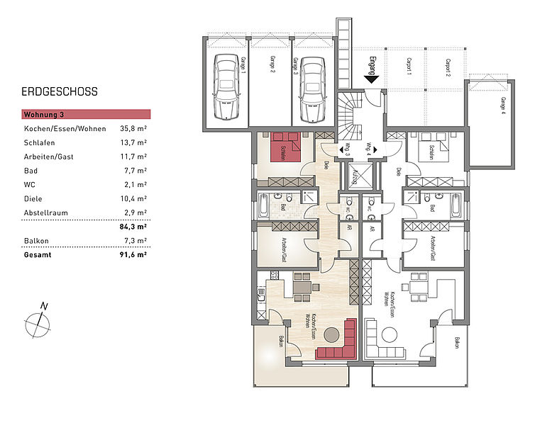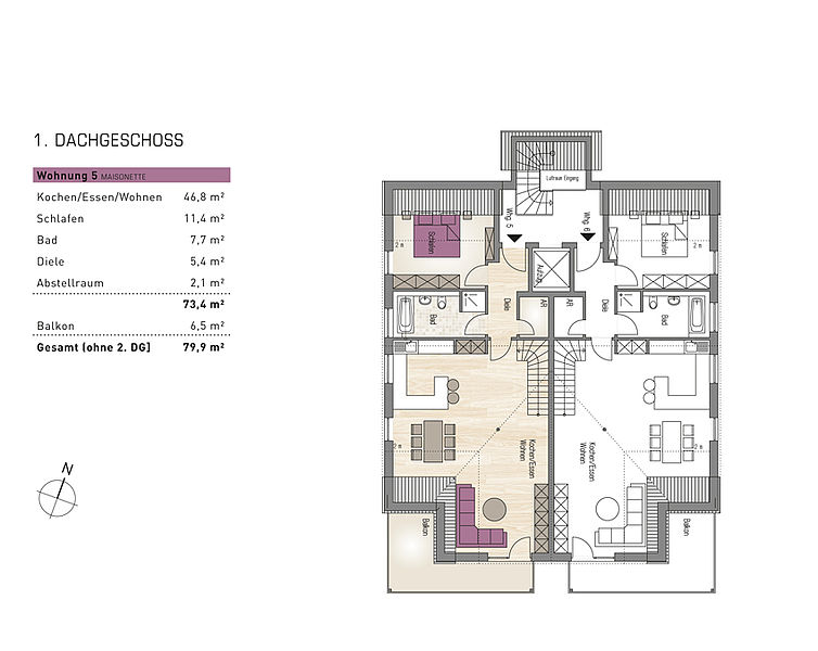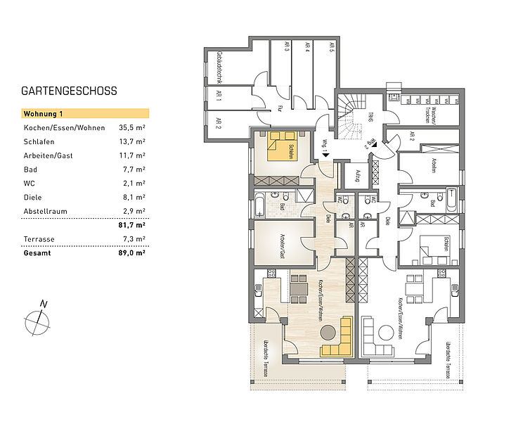 • sechs Wohneinheiten von 89 m² bis zu 103 m²