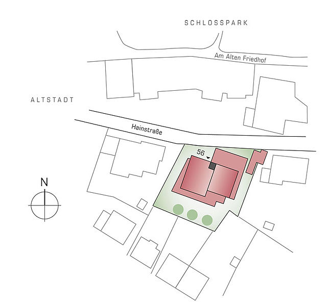 Das Objekt „Wohnen am Schloss“ in der Hainstraße ist direkt an der Schlossmauer der mittelalterlichen Höhenburg Oberes Schloss auf dem Siegberg gelegen und nur einen Steinwurf von dem schön angelegten Schlosspark entfernt. Die angrenzende Altstadt erinnert mit Kopfsteinpflaster, regionaltypischer Fachwerksarchitektur, Kirchen und zahlreichen historischen Gebäuden an längst vergangene Zeiten. Trotz der ruhigen Lage sind die Oberstadt und der Siegener Wochenmarkt in nur wenigen Minuten zu Fuß zu erreichen.