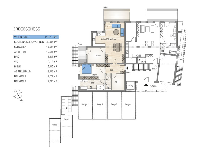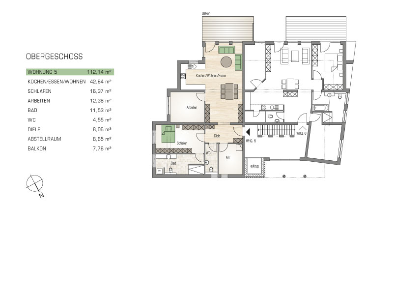 • alle Wohnungen sind über einen Aufzug erschlossen
