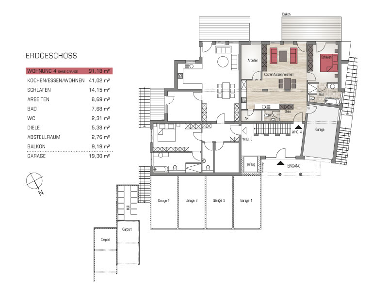• alle Wohnungen haben Balkone bzw. eine Terrasse