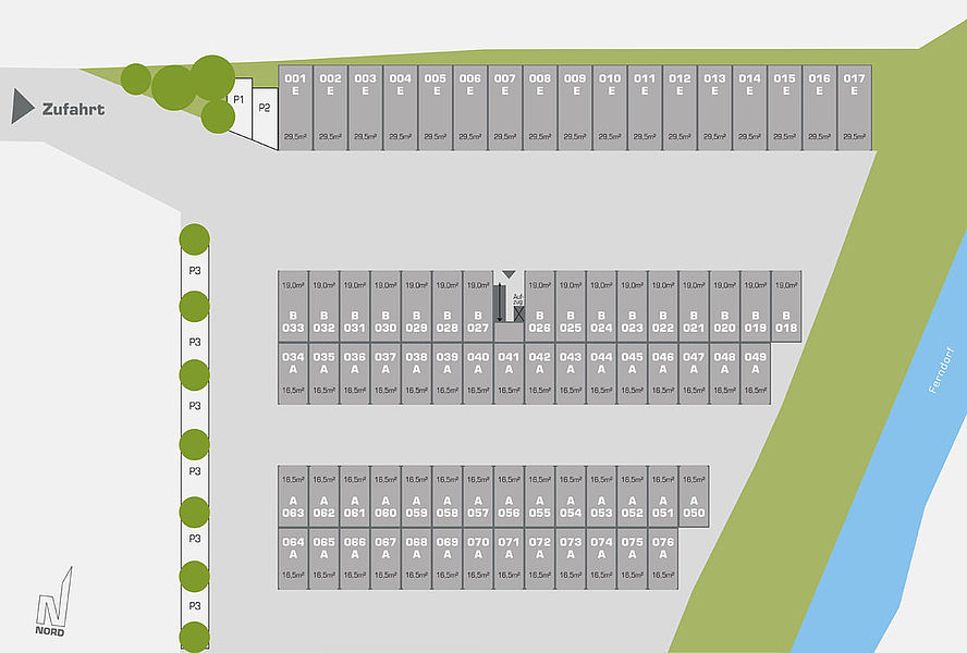 | Typ | Außenmaße (L x B x H) | Heizung | Nutzfläche ca. | Kaufpreis netto EUR | 19% MwSt. | Planmiete netto EUR p.a. | |