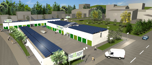 Die Idee: unsere FleXXLager bestehen aus kleinen, abschließbaren und überwachten garagenähnlichen Lagerflächen, die gemietet werden können. Zudem sind die Dächer der FleXXlager mit Photovoltaikanlagen ausgestattet.